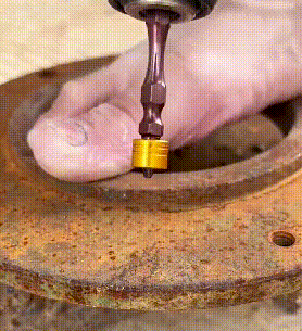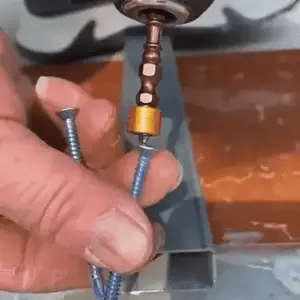 3. Pon el tornillo en la punta magnetizada, alinea y comienza a atornillar, ajustando la velocidad y la presión según el material.