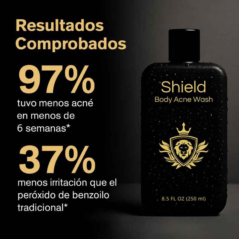Shield fue formulado con tecnología Curoxyl-42, que penetra los poros con partículas 5× más pequeñas y con un 37% menos de irritación que el peróxido común. Además, contiene niacinamida, ceramidas y ácido hialurónico que calman e hidratan la piel.