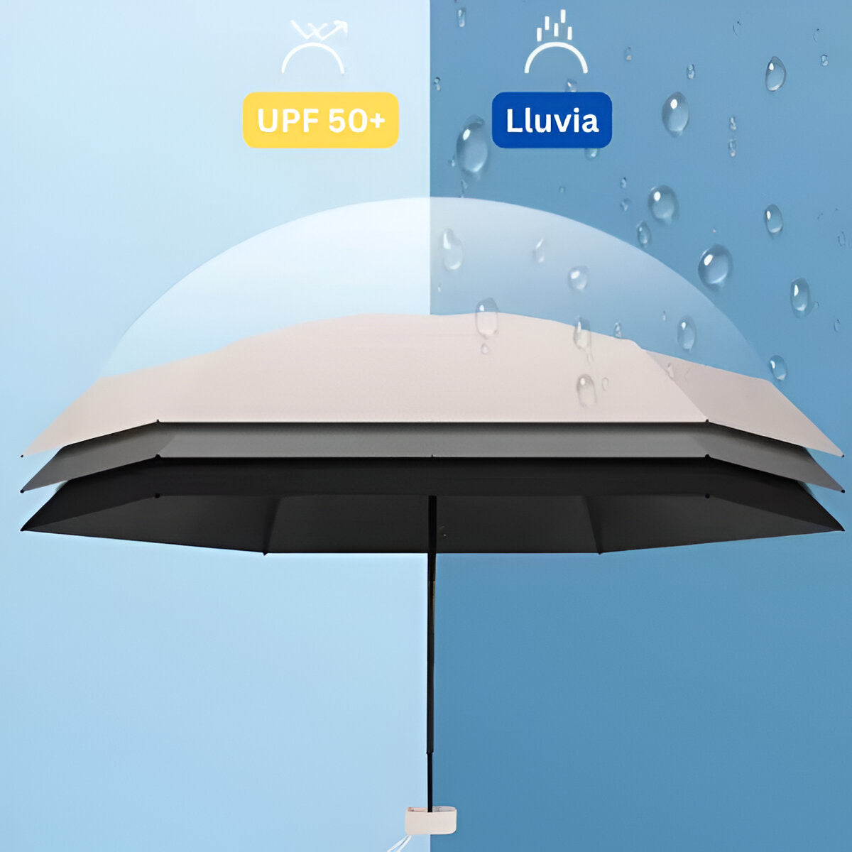Nuestra mini sombrilla ofrece una protección UV altamente efectiva gracias a su revestimiento especial que bloquea el 99% de los rayos UVA y UVB. Esto asegura que tu piel esté protegida contra los dañinos efectos del sol, ayudando a prevenir quemaduras y reducir el riesgo de cáncer de piel.