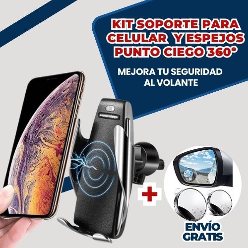 KIT SOPORTE PARA CELULAR CON SENSOR Y CARGA INALAMBRICA Y ESPEJOS PUNTO CIEGO 360º