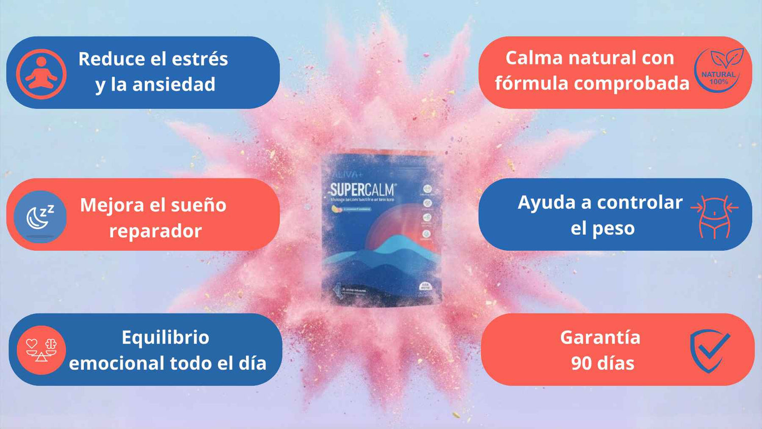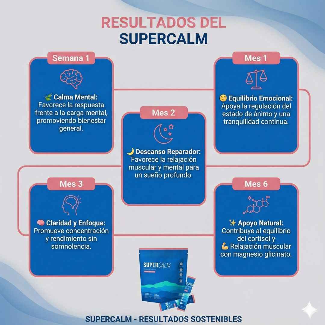 SuperCalm favorece relajación y descanso sin causar somnolencia excesiva, por lo que puedes usarlo sin perder energía.