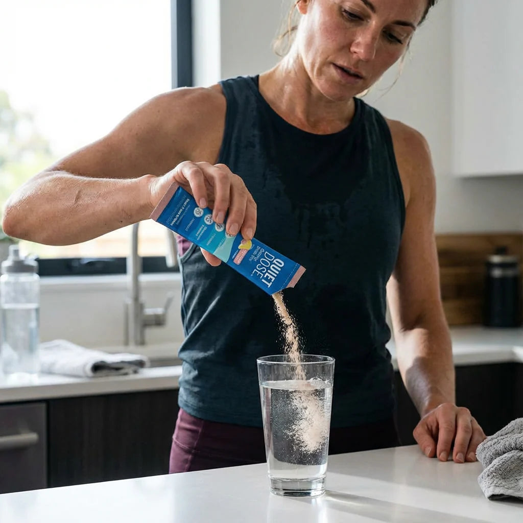 - Disolver 1 sachet en un vaso con agua (200–250 ml).